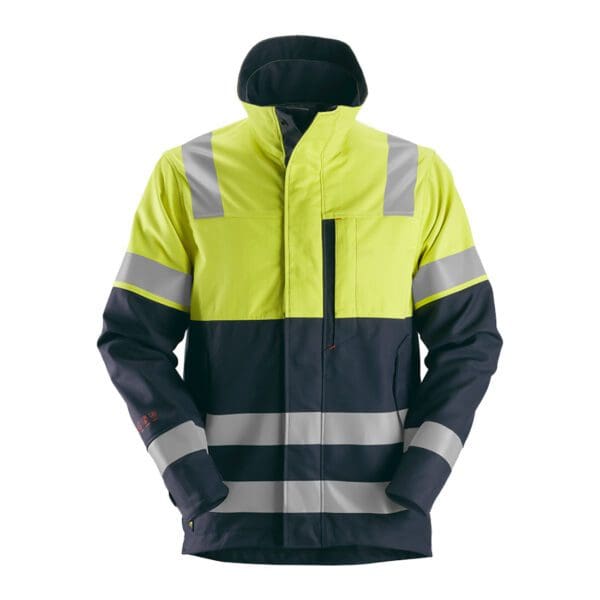 Personal protective jacket built to provide protection and comfort in high-risk work areas. The jacket offers certified protection against several hazards and features pockets that offer practical storage and extra functionality.