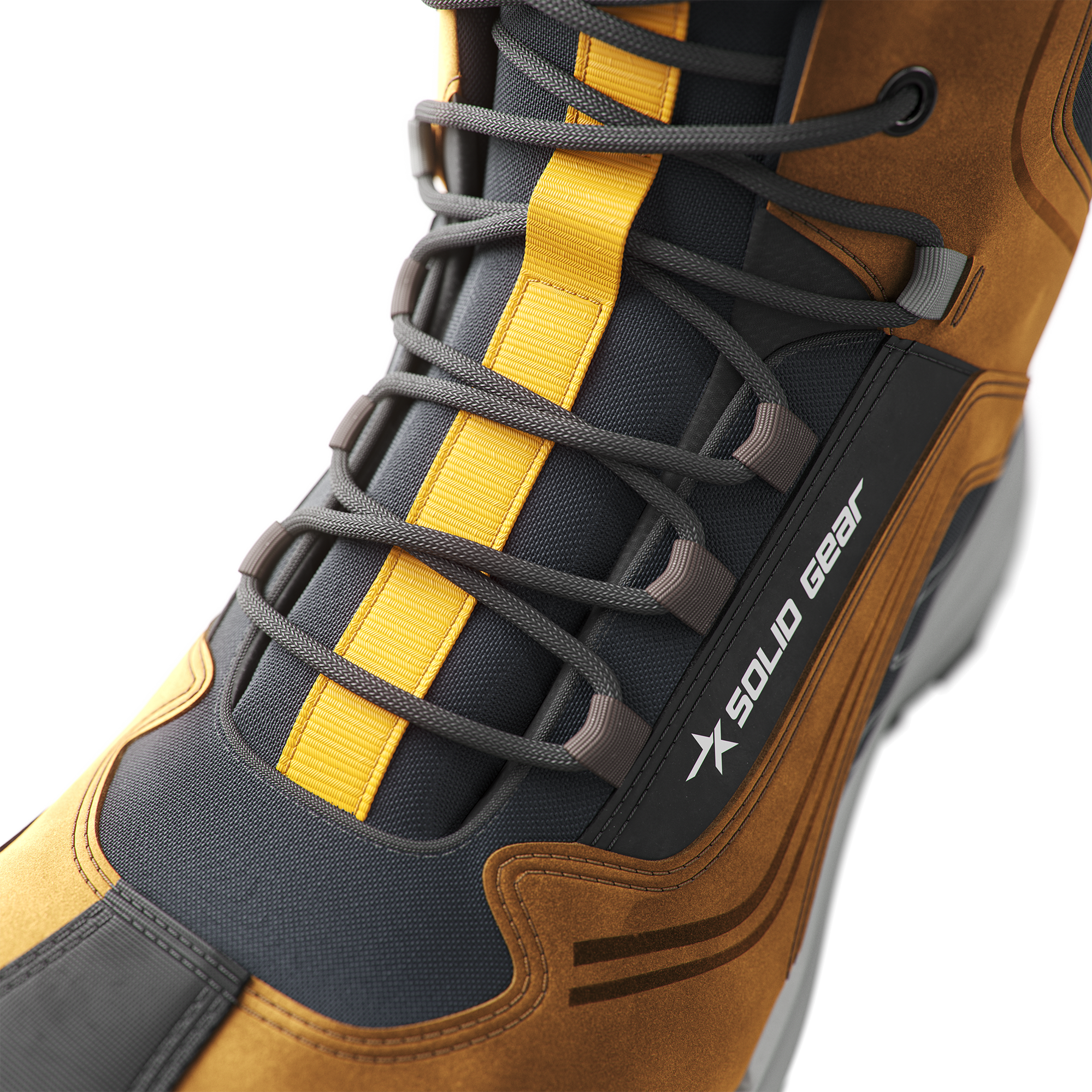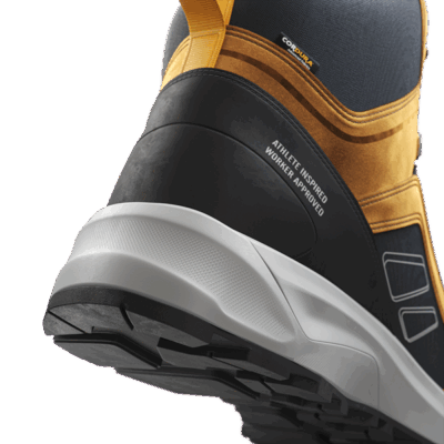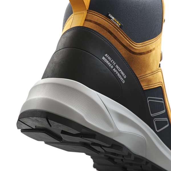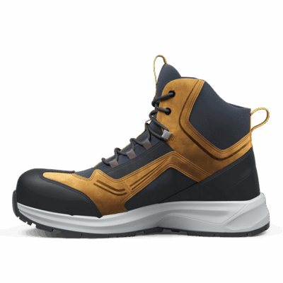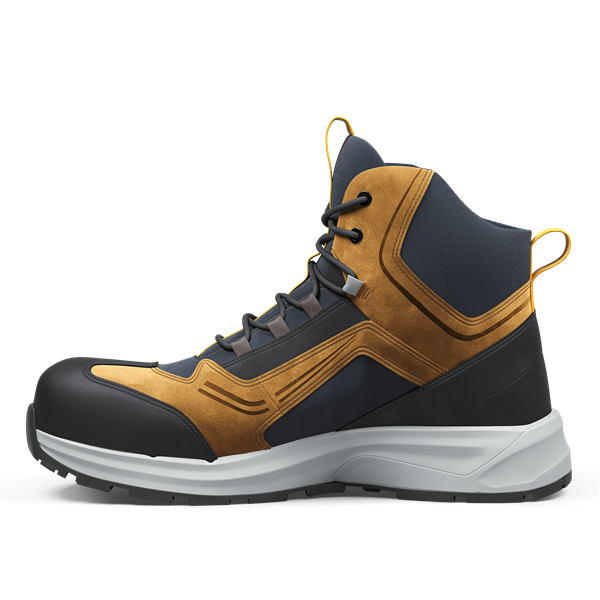 Sporty midcut safety boot with built-in comfort in all parts. Upper of LWG leather with nubuck finish and CORDURA® fabric for breathability and lightweight. Moisture transporting and recycled lining for foot climate. Cushioning and breathable open cell PU foam insole. Lightweight EVA midsole with integrated board shank. Oil and slip and heat resistant rubber outsole designed for great grip. Completely metal free with fiberglass toe cap and soft nail protection. ESD function according to EN IEC 61340-5-1:2016. Upper: LWG leather and CORDURA® Nylon and Polyester Lining: Recycled Polyester Outsole: Oil and slip resistant rubber Midsole: EVA Footbed: Open cell PU foam Fit: Wide Sizes: 36-48 Safety standard: EN ISO 20345:2022 S3L, SR, HRO, FO Protection: Fiberglass toe cap and soft nail protection