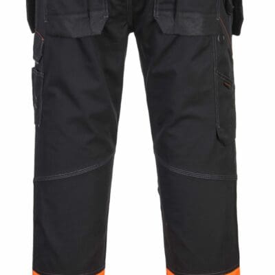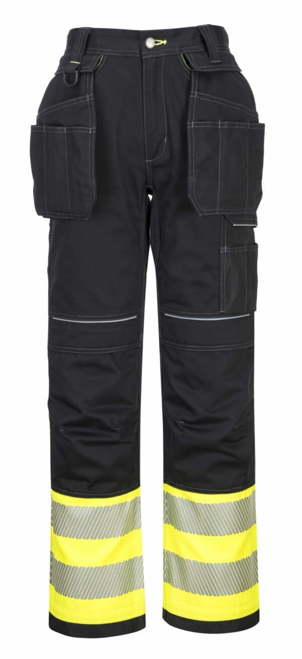 An innovative class 1 hi-vis trouser featuring multi-functional holster pockets, top loading kneepad pockets and an easy access multiway thigh pocket for secure storage of phone, keys and tools. Oxford fabric reinforcement at key abrasion points and triple stitching throughout guarantee maximum durability.