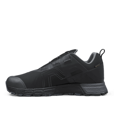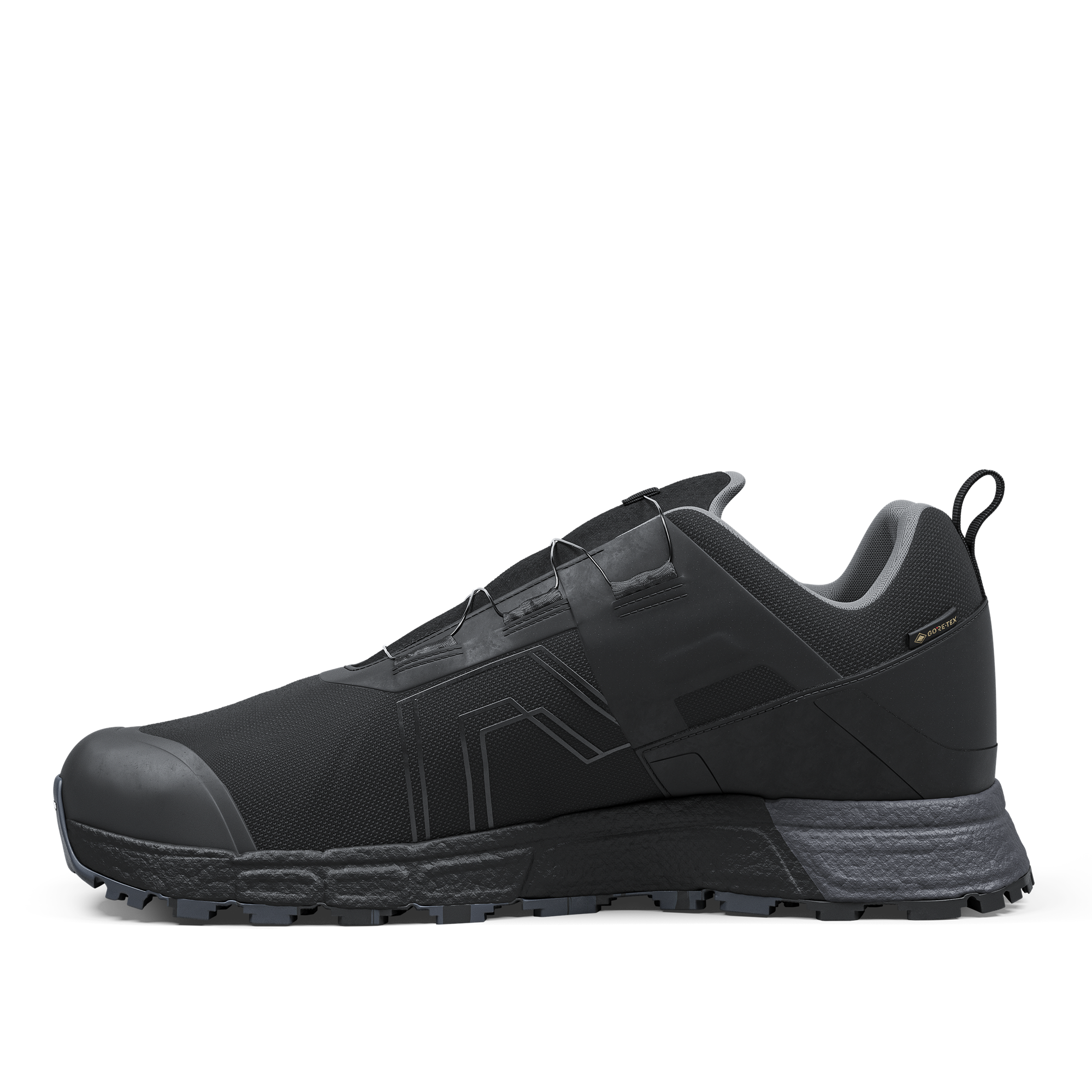 The Bound Tactical GTX Low is a stealth occupational shoe for max outdoor performance. The ETPU midsole and a partly recycled OrthoLite® insole provide superior cushioning and rebound while maximizing ground contact for the ultra-grippy Michelin® outsole. A GORE-TEX lined blacked-out CORDURA® upper keeps the feet dry, ventilated, and protected while the BOA® Fit System ensures a dialled-in fit.