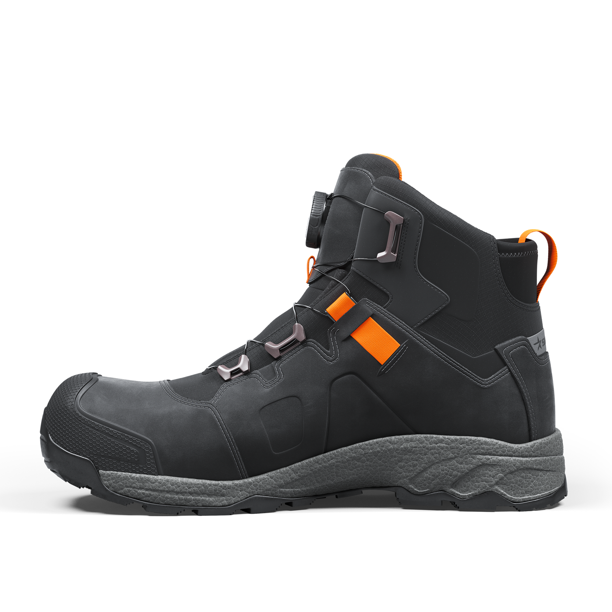 Vapor 3 Mid makes work feel good with Vibram® outsole, rigid stability and all-work comfort. Double TPU shanks integrated in the light midsole, enables you to power forward with stability. And up top, BOA® Fit System and durable leather keep you protected and comfy – whether you’re balancing on the scaffolds or going off-road across rubble and rocks. Upper: LWG nubuck leather and textile Lining: Nylon knit Outsole: Oil and slip resistant Vibram® rubber Midsole: ETPU Footbed: PU foam with highly breathable recycled materials Function: BOA® Fit System Fit: Wide Sizes: 36-48 Safety standard: EN ISO 20345:2022 S3S, SR, HRO, FO Protection: Fiberglass toe cap and soft nail protection