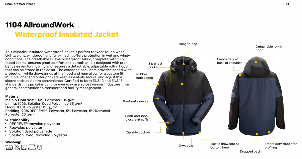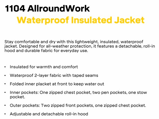 SPECIAL PROMO 1104 Allround Work Waterproof insulated jacket including 50 year Hoodie worth £49.99