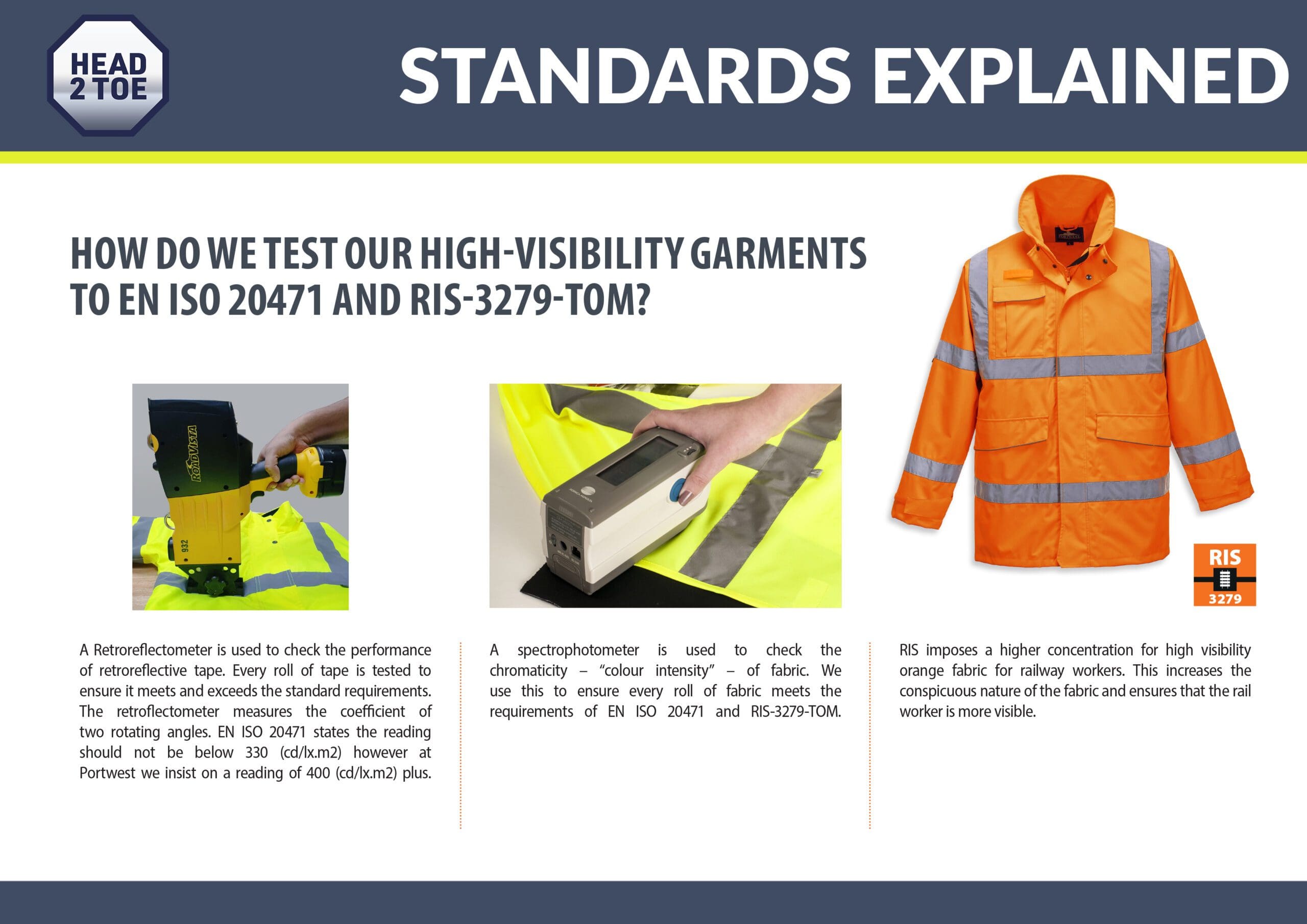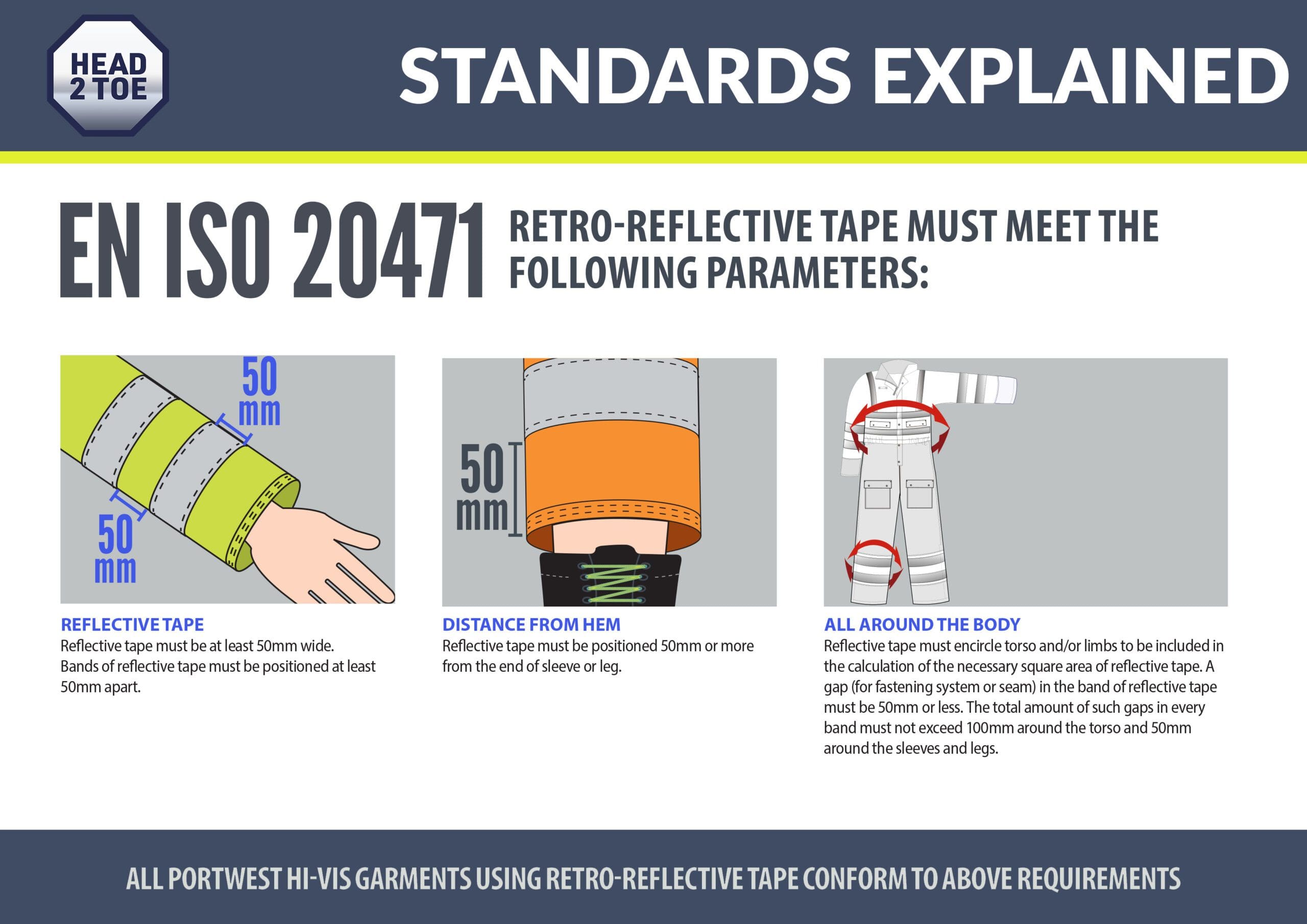 An ISO standard (International Organisation for Standardisation) is an internationally recognised standard for quality systems and an EN standard (European Standard) is a European recognised standard for quality systems. Both of them set out the criteria for safety clothing.